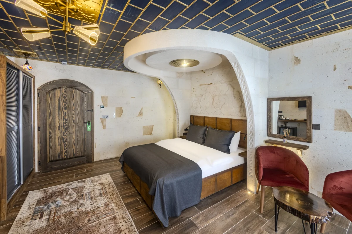 Özel spa küveti ve şömine ile romantik atmosfer. Rahatlama ve konfor bir arada.